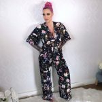 This jumpsuit is the most stunning jumpsuit we have ever had the pleasure of trying on! It’s thick and silky and the print is just so beautiful. It has a zip at the back and two deep pockets at the front. It fits true to size. Jodie is a 10 and wears a 10. Jodie is 5’2.